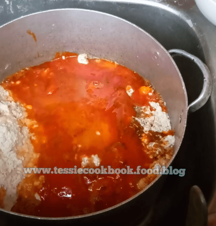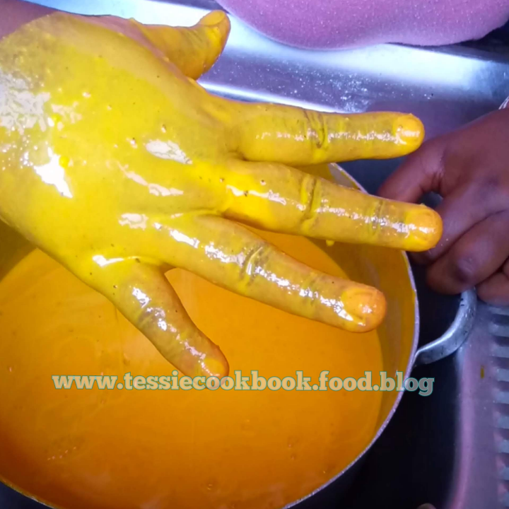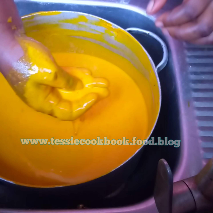 Add 3 cups of warm water (remember it’s warm water) to the mixture and mix together with your hand while making sure there is no lumps.